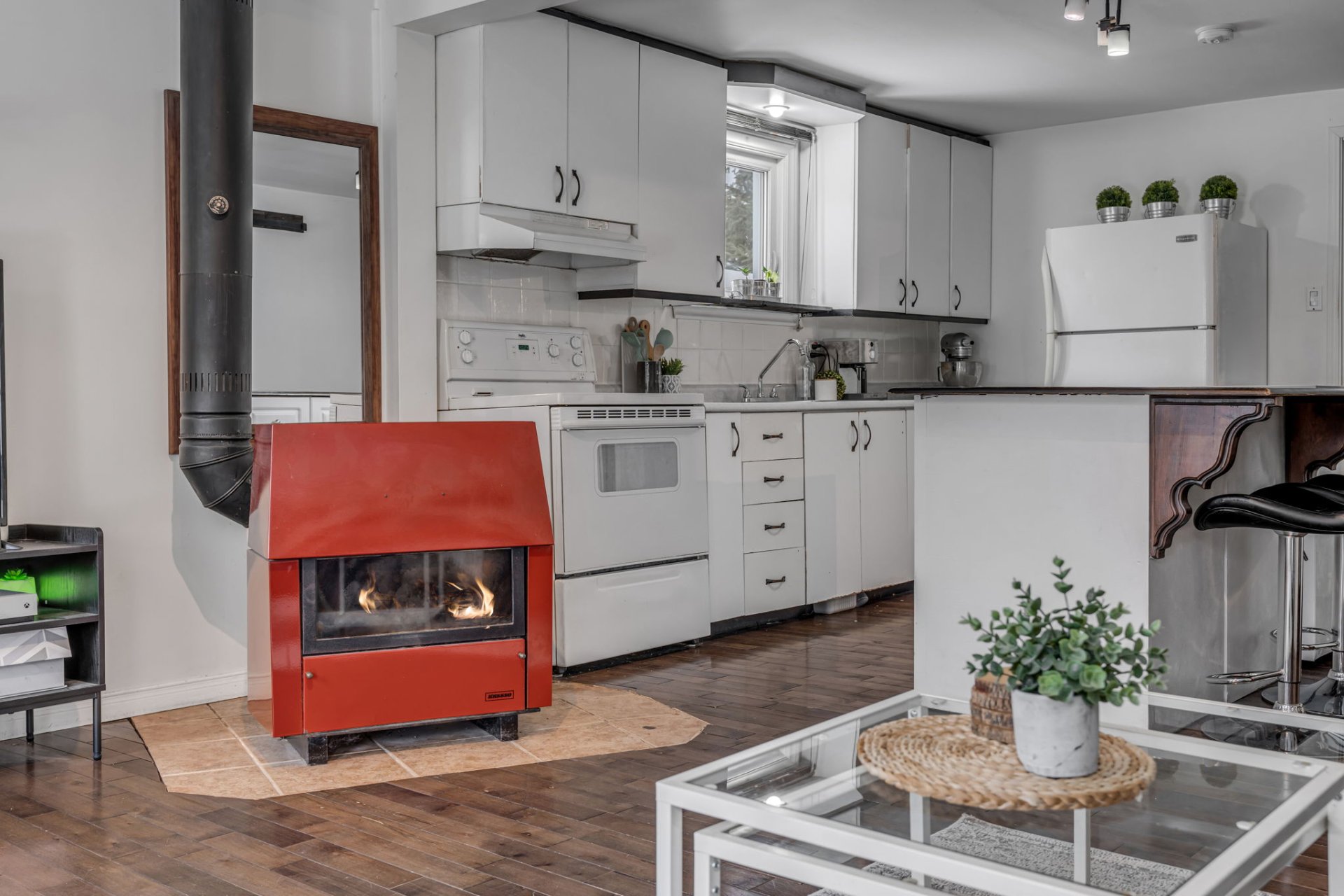 Luminaires, stores, poêle à bois.Exclusions